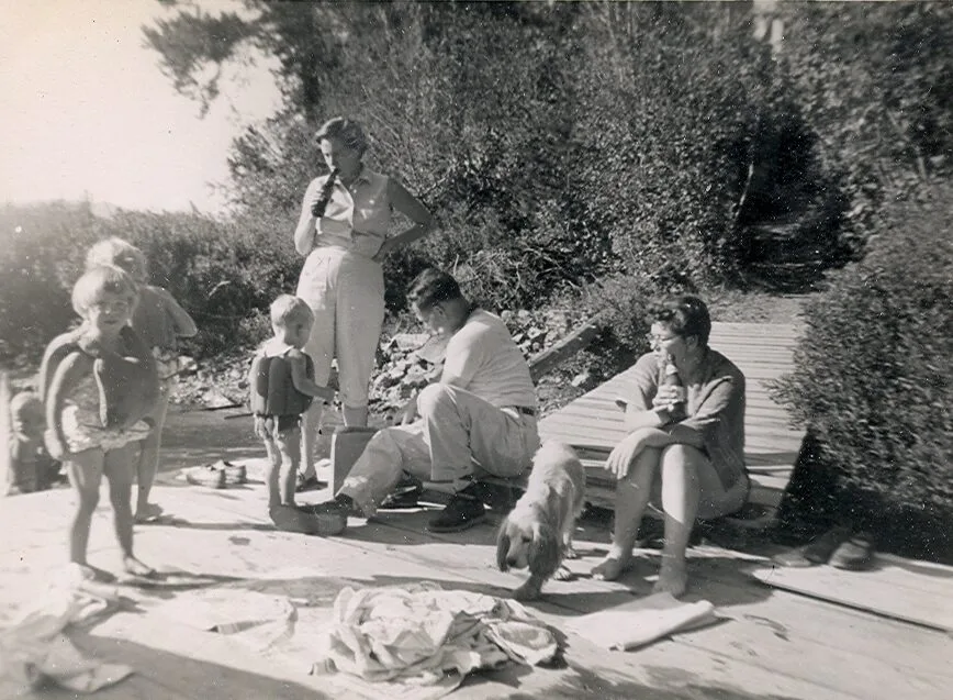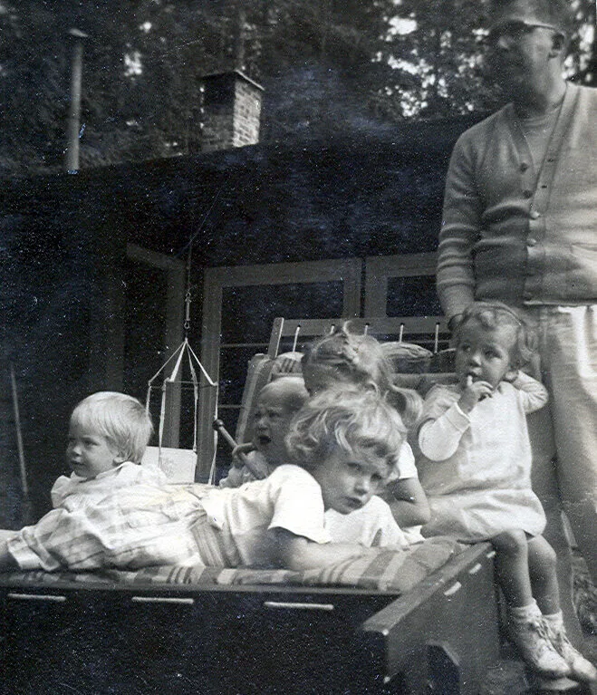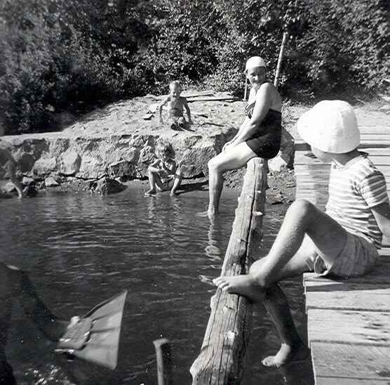Then came the next generation, who currently care for the family cabins. Dick and Shirley Ellis had five children, starting with Debbie in 1951, Cathy in May 1952, and David in March 1954 >obit. Sept 2021. Barbara in March 1957 and ending with Patricia B. Nov 1959 > obit April 1, 2021. Joan and Duke Avery had two children: Helen, born in October 1957, and Richard Avery, born in October 1959. November 13, 2013. The Ellis and Avery families have shared both cabins to the present day.